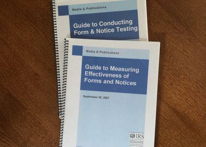Led high-visibility projects for writing and production of employee guides such as "Guide to Conducting Form and Notice testing," a structured approach to testing that included a task list, step-by-step instructions, testing calendars, and references. Another guide provided IRS employees with procedures for measuring the effectiveness of their forms and notices.